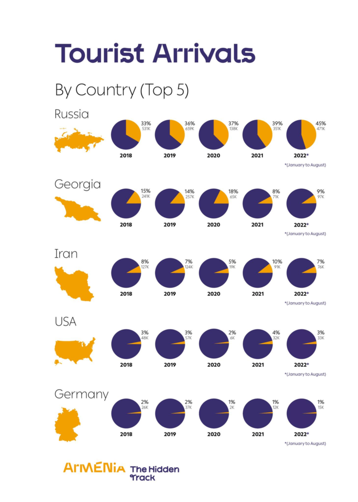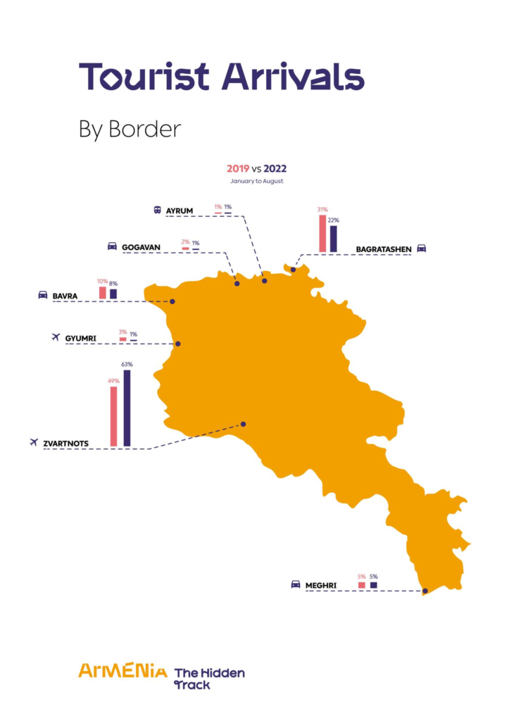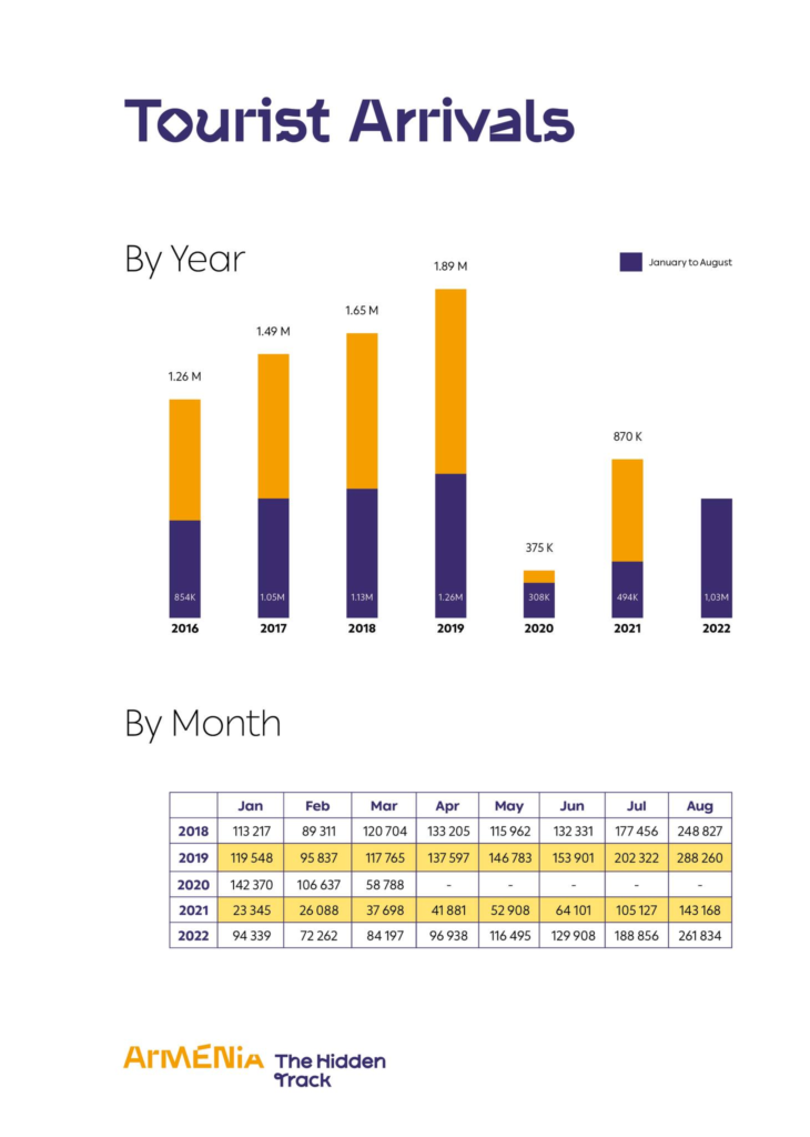 Օգոստոս ամսին Հայաստան այցելած զբոսաշրջիկների քանակը կազմել է մոտ 262 հազար՝ հանգրվանելով 2019-ի ցուցանիշից փոքր-ինչ հարավ: Այս մասին իր ֆեյսբուքյան էջում տեղեկացրել է Հայաստանի Հանրապետության Էկոնոմիկայի նախարար Վահան Քերոբյանը: