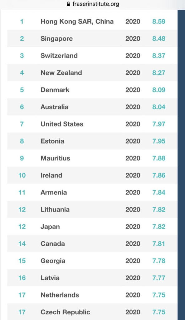 ԱԺ ֆինանսավարկային և բյուջետային հարցերի մշտական հանձնաժողովի նախագահ Գևորգ Պապոյանն իր ֆեյսբուքյան էջում տեղադրել է տնտեսական ազատության ինդեքսով առաջատար երկրների ցանկը։